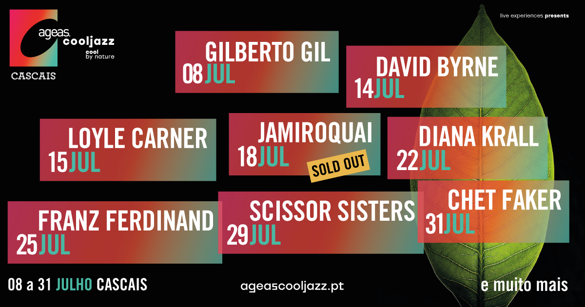 Apoio M80 Partilhar Datas 08 jul quarta-feira Hipódromo Manuel Possolo, Cascais PARTILHAR Apoio M80 Ageas Cooljazz: Jamiroquai, David Byrne, Gilberto Gil e muito mais... O Festival Ageas Cooljazz está de regresso, com o apoio da m80, e já com grandes nomes confirmados para a edição de 2026. Partilhar